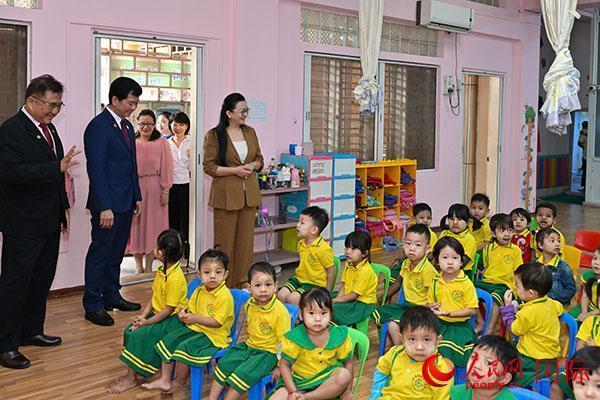 马珈大使一行参观曼德勒福庆语言电脑学校幼儿园。人民网记者 谢佳君摄