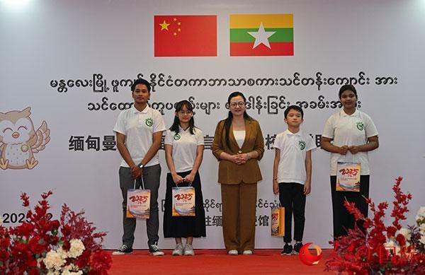 马珈大使一行走访曼德勒福庆语言电脑学校并捐赠教学物资。人民网记者 谢佳君摄